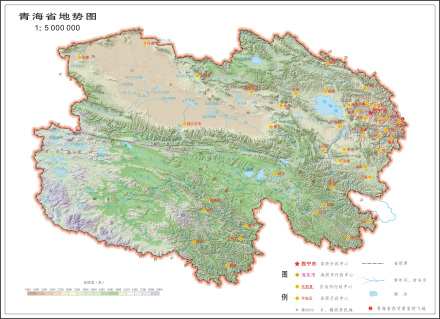 青海的气候地理青海全省地势总体呈西高东低,南北高中部低的态势,西部海拔高峻,向东倾斜,呈梯型下降,东部地区为青藏高原向黄土高原过渡地带,地形复杂,地貌多样。各大山脉构成全省地貌的基本骨架。全省平均海拔3000米以上,省内海拔高度3000米以下地区面积为11.1万平方千米,占全省总面积15.9%;海拔高度3000到5000米地区面积为53.2万平方千米,占全省总面积76.3%;海拔高度5000米以上地区面积为5.4万平方千米,占全省总面积7.8%。青南高原平均海拔超过4000米,面积占全省总面积的一半以上;河湟谷地海拔较低,多在2000米左右。最高点位于昆仑山的布喀达坂峰为海拔6851米,最低点位于海东市民和县马场垣乡境内(青海省最东端)与甘肃交界处,海拔1644米。青海省地貌相接的四周,东北和东部与黄土高原、秦岭山地相过渡,北部与甘肃河西走廊相望,西北部通过阿尔金山和新疆塔里木盆地相隔,南与藏北高原相接,东南部通过山地和高原盆地与四川盆地相连。省内平原面积为19.7万平方千米,占全省总面积28.3%;山地面积为34.1万平方千米,占全省总面积48.9%;丘陵面积为10.2万平方千米,占全省总面积14.6%;台地面积为5.7万平方千米,占全省总面积8.2%。